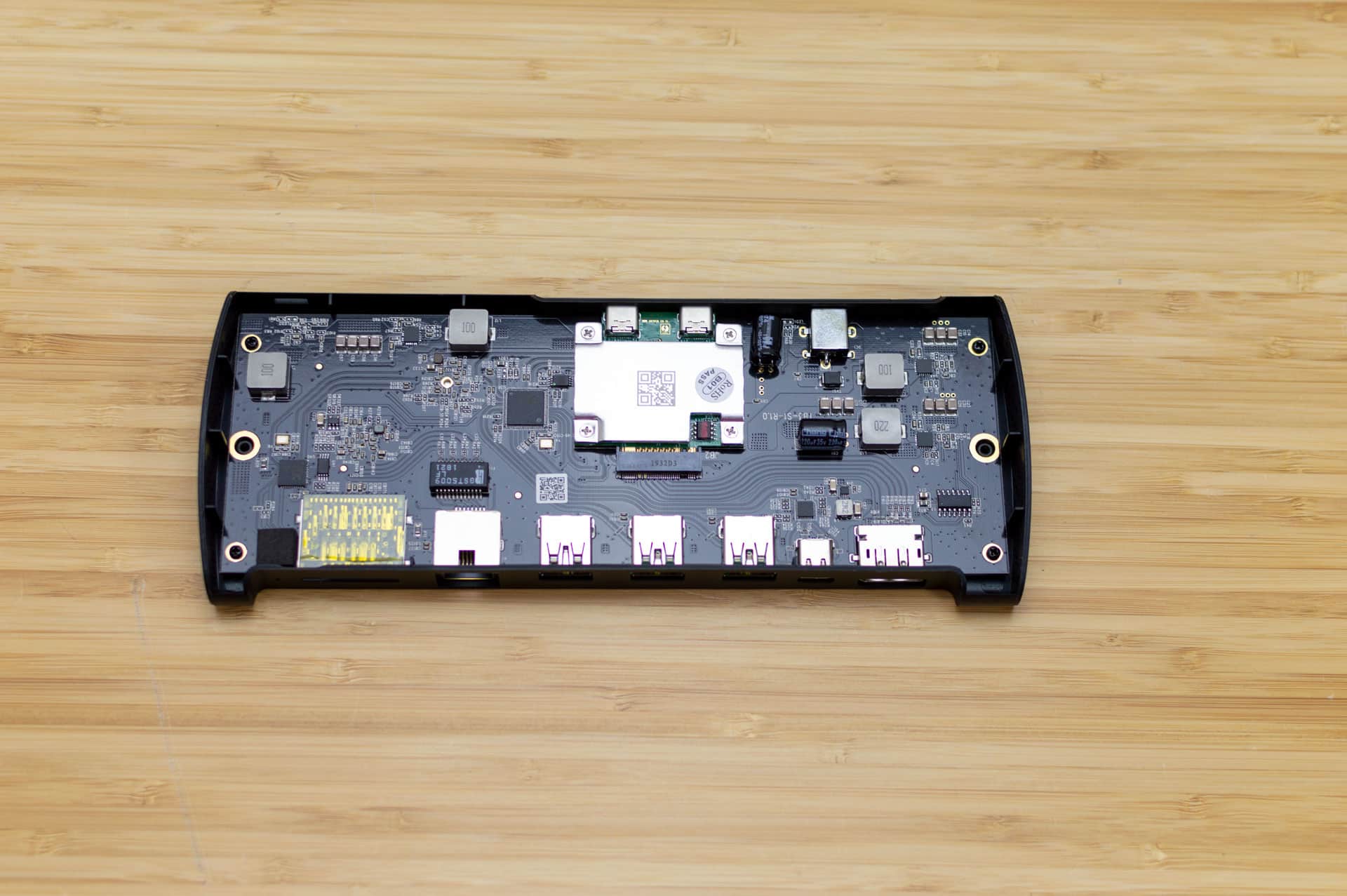 ما با اتصال USB ادامه می دهیم. این داک دارای ۱ پورت USB-A 3.0 5Gbps به رنگ آبی برای اتصال وسایل جانبی است. سپس ۲ پورت USB-A 3.1 10Gbps به رنگ سبز برای انتقال داده با سرعت بالا داریم. در نهایت یک پورت USB-C 3.1 10Gbps برای انتقال داده یا اتصال گوشی هوشمند داریم.